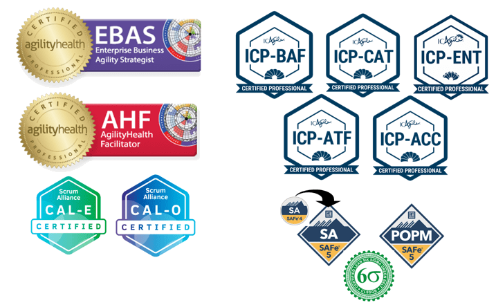 As a certified coach on coachng agile transitions and business agility foundations, I utilize the AgilityHealth® measurement platform to steer the agile transformation and develop a common way to not only measure agility but also how to talk about business agility.